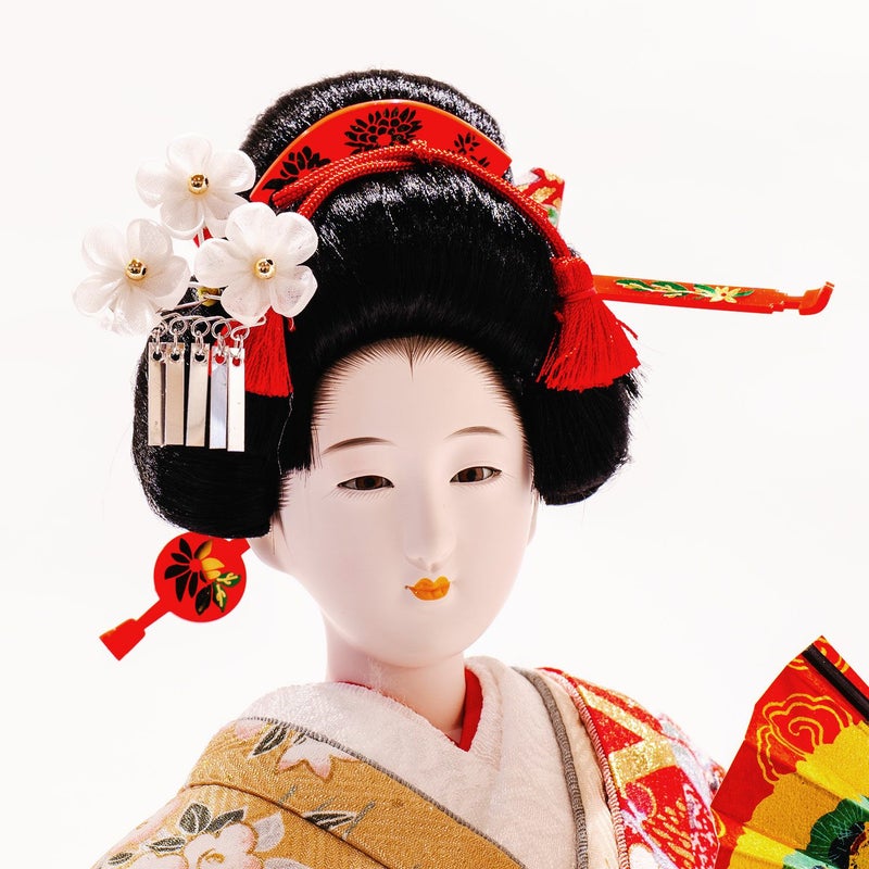 おやま人形は、日本髪を結い美しい衣裳に身をつつんで日本女性の美を象徴しています。