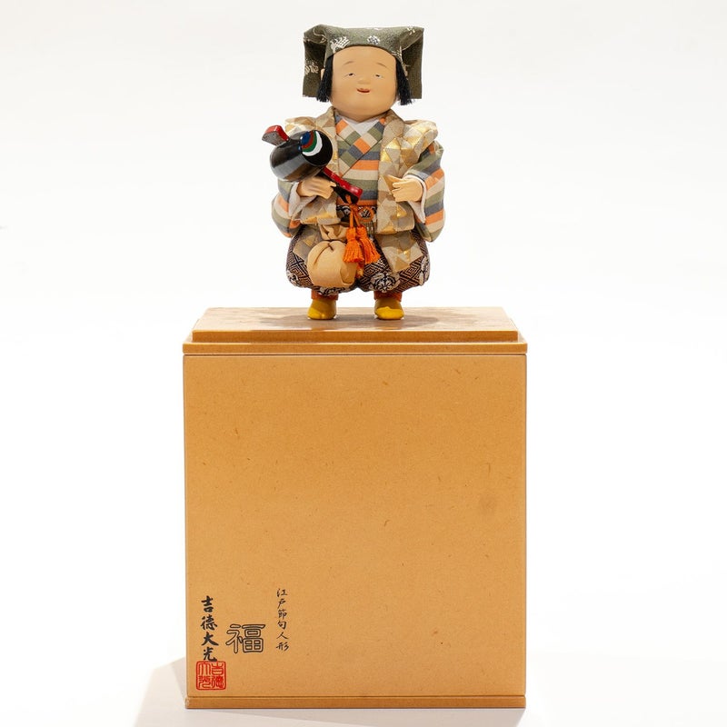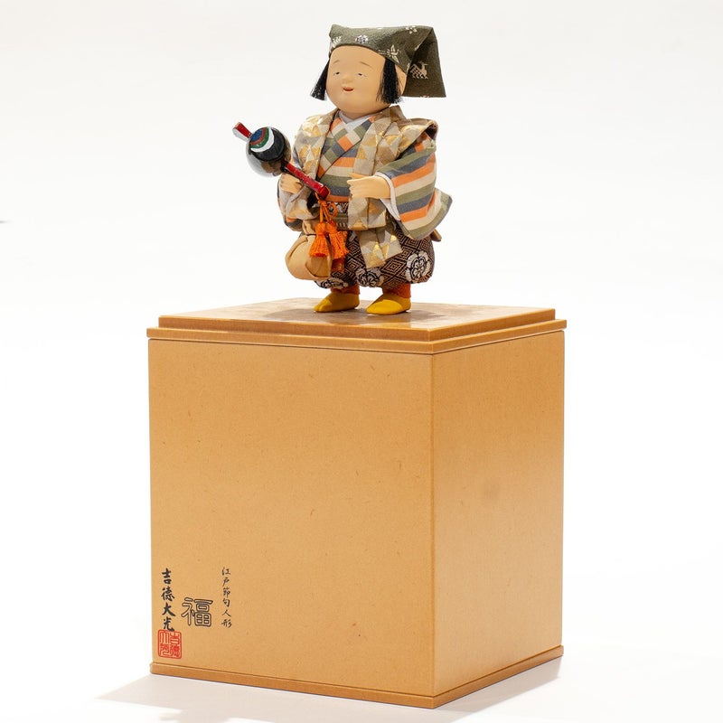 お人形は木製の台座にたち、着物も伝統的な柄で非常に文化的な雰囲気を持った一品です。 また海外へのお土産品としても最適です。