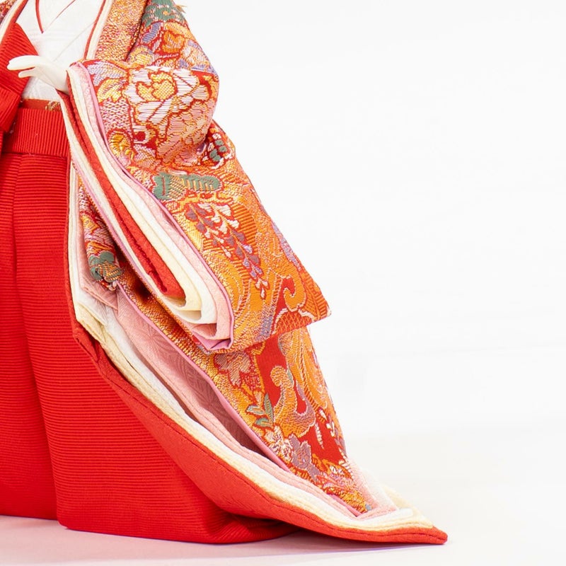 ■お内裏様の衣裳には熨斗目に菊尽くし文様の金襴を使用しました。