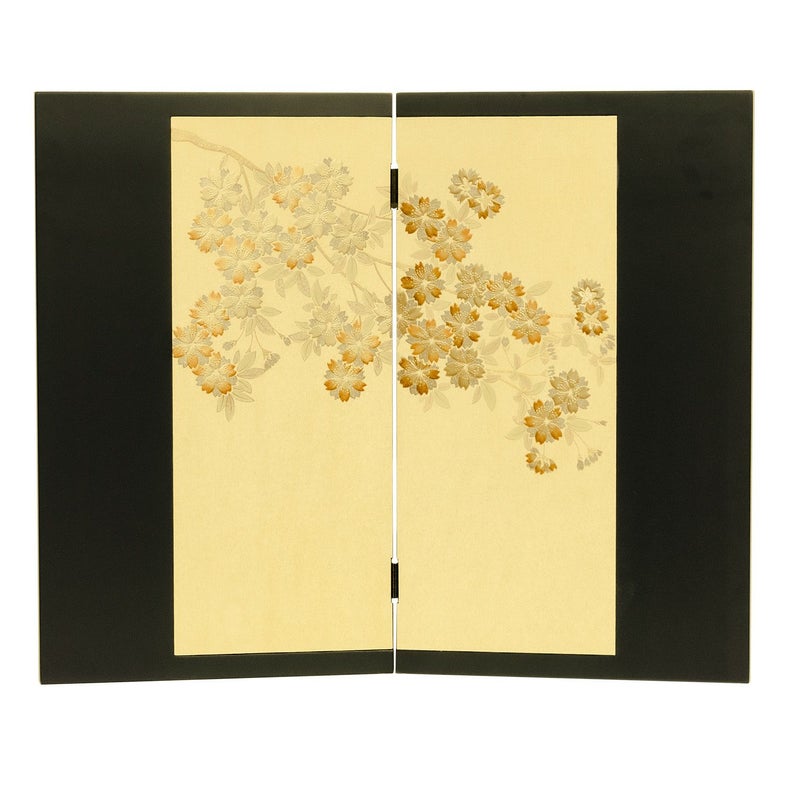 ■桜を描いた二曲屏風は古典とモダンの融合を演出。