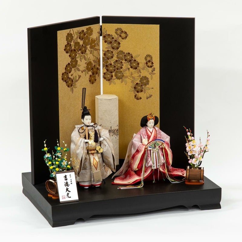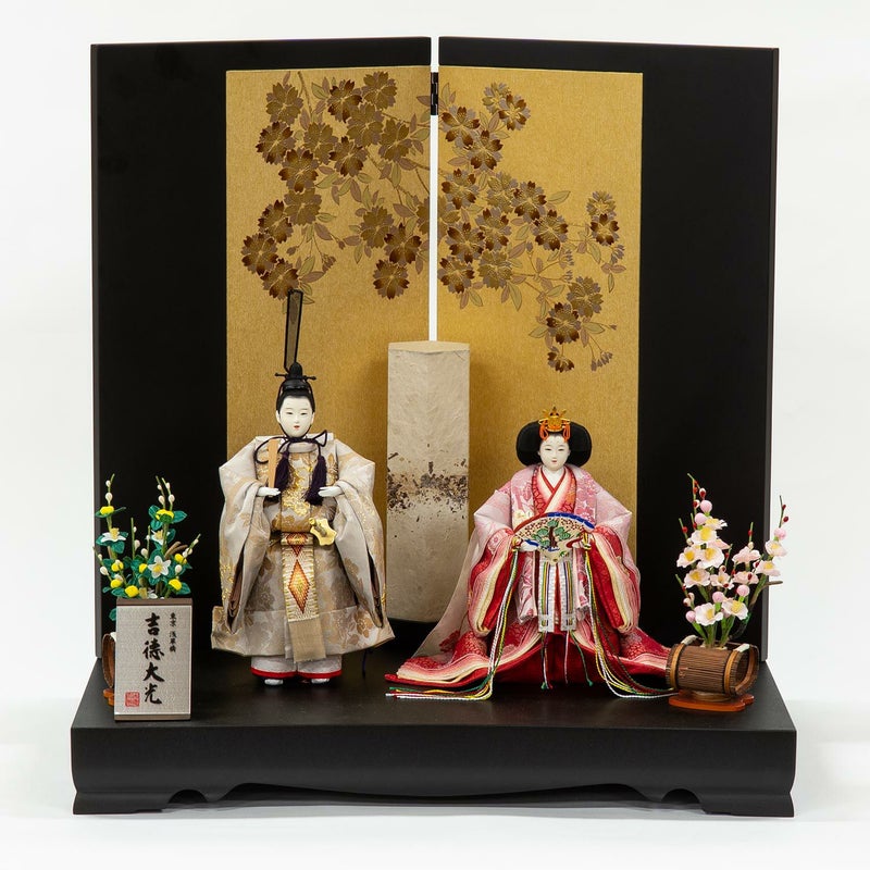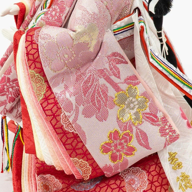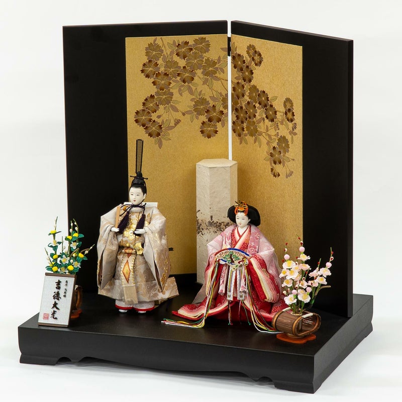 咲き誇る花々を施した春らしい立姿親王飾りです。