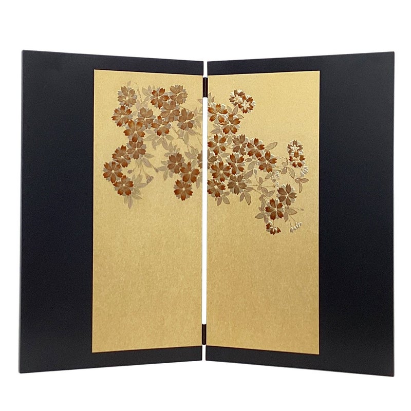 ■桜を描いた二曲屏風は古典とモダンの融合を演出。