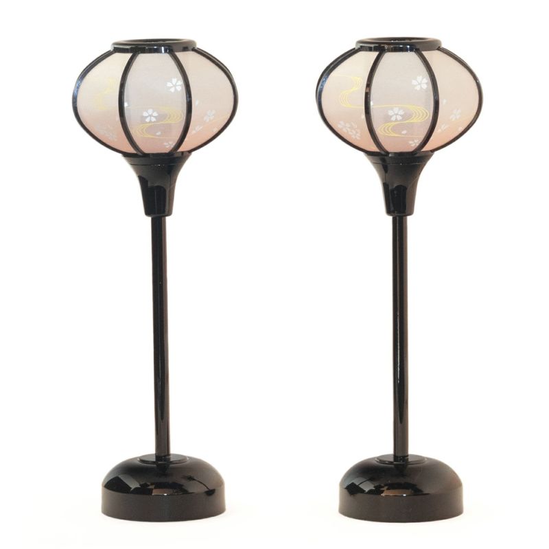 ■雪洞は、桜の花を描いたコードレスの電池式で、明かりがともります。