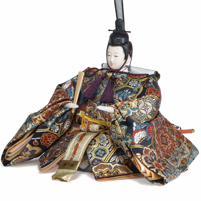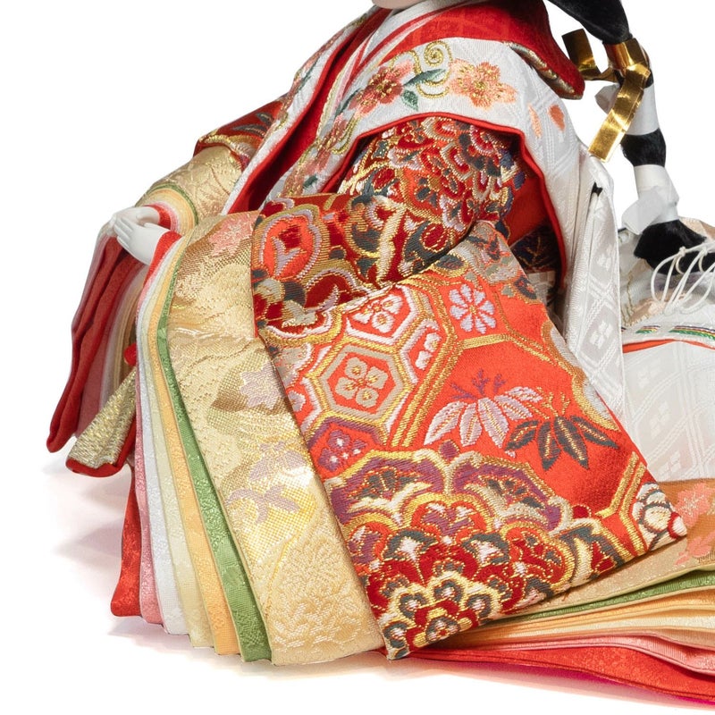 ■古典的彩りの金襴衣裳を着せ付けた男雛に女雛。