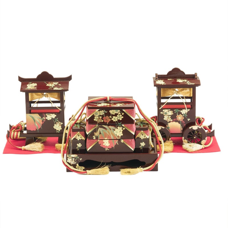 ■雛道具には、ワイン色に「花と雪輪」を描きました。