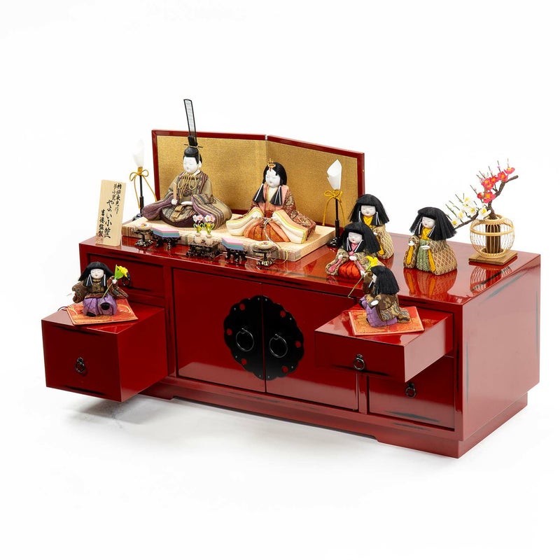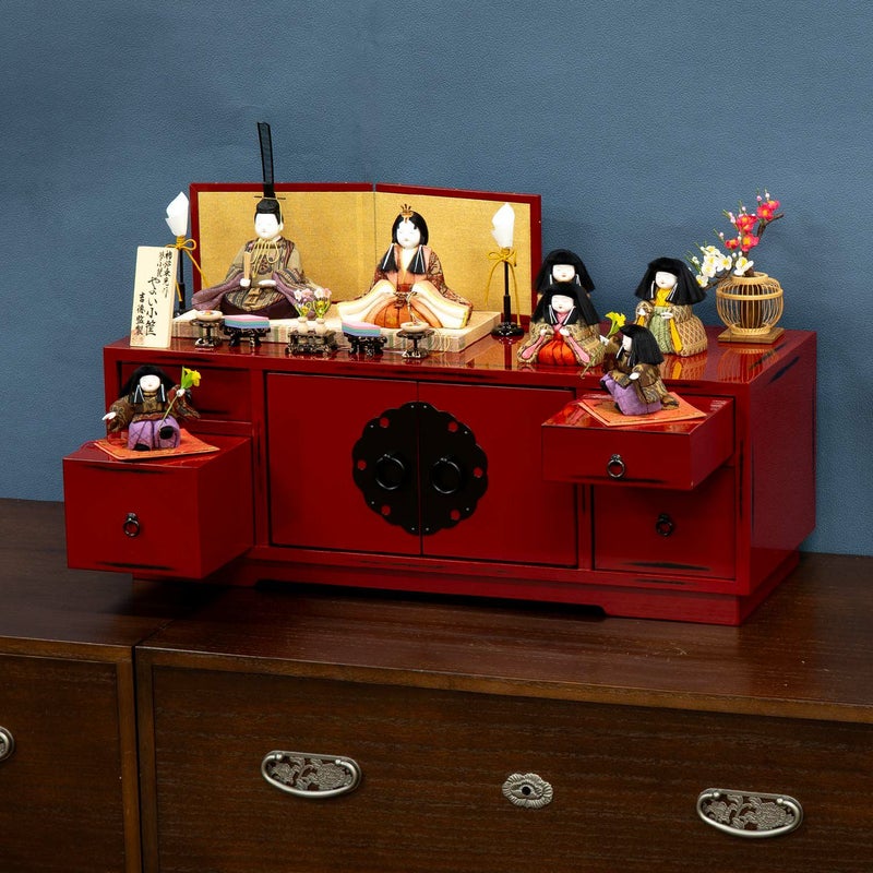 ■お人形も七人を配した、ひな祭りのお祝いが楽しくなる一揃え。