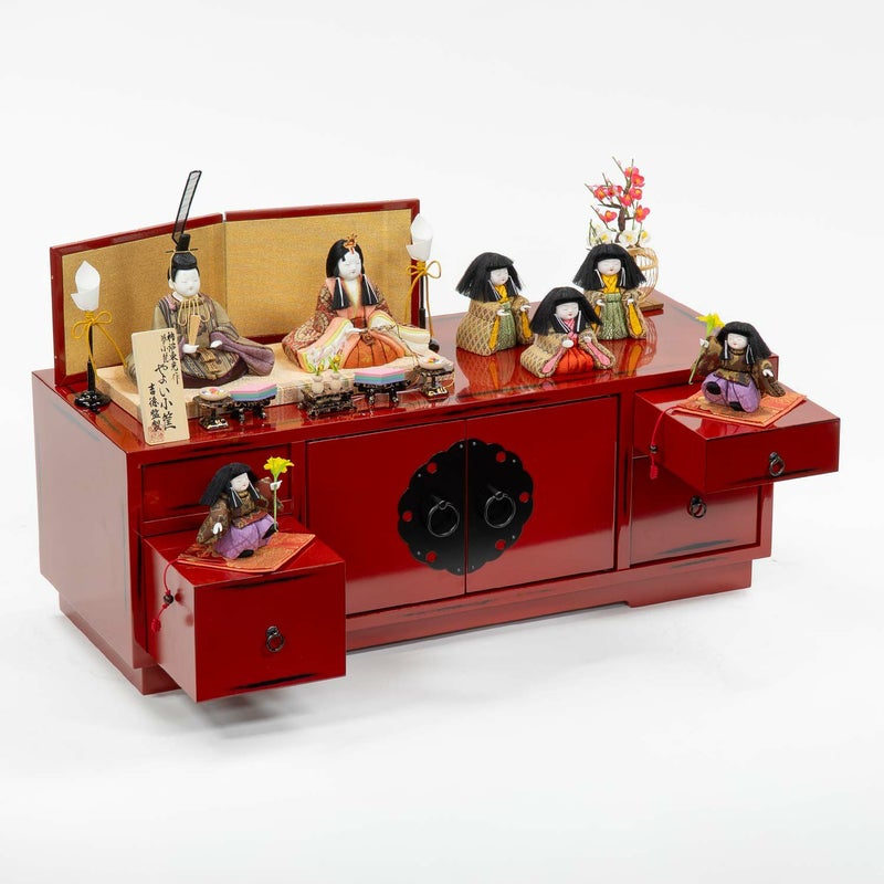 古典的なデザインでありながらロングセラーの柿沼東光作の木目込み収納箱飾り。