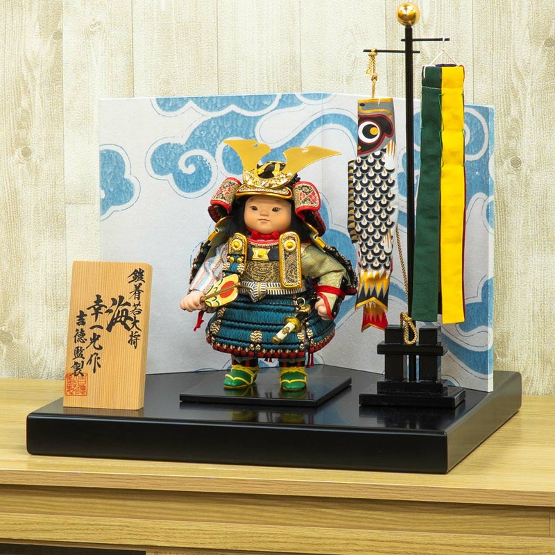 かわいい表情が特長的な幸一光作 鎧着大将飾りです。