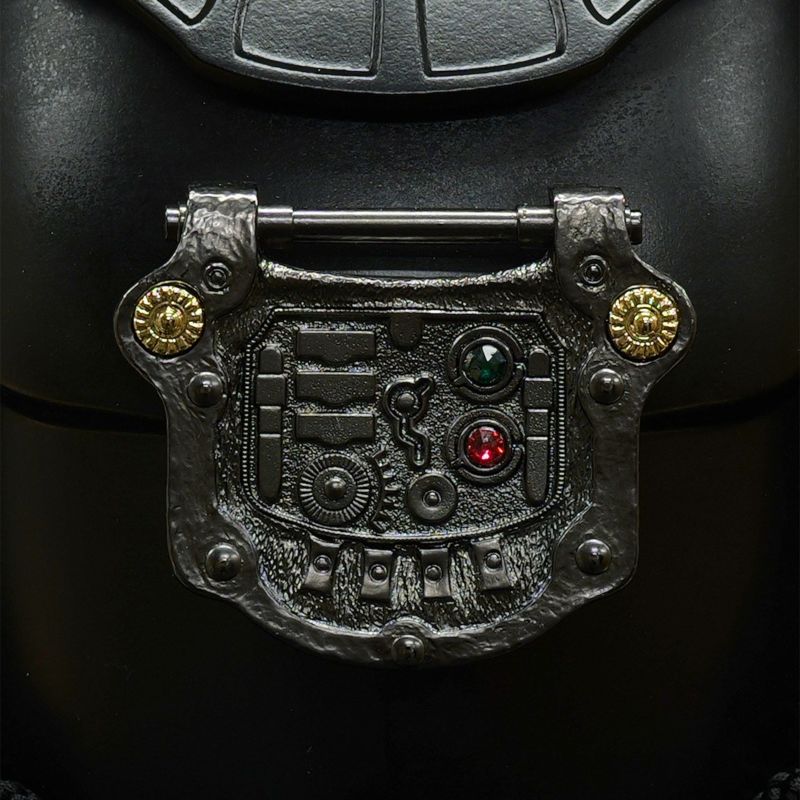 当鎧は、兜に帝国軍のシンボルマークの前立(まえたて)を用い、そして籠手、佩楯にも銀河帝国軍のシンボルマークを配しました。