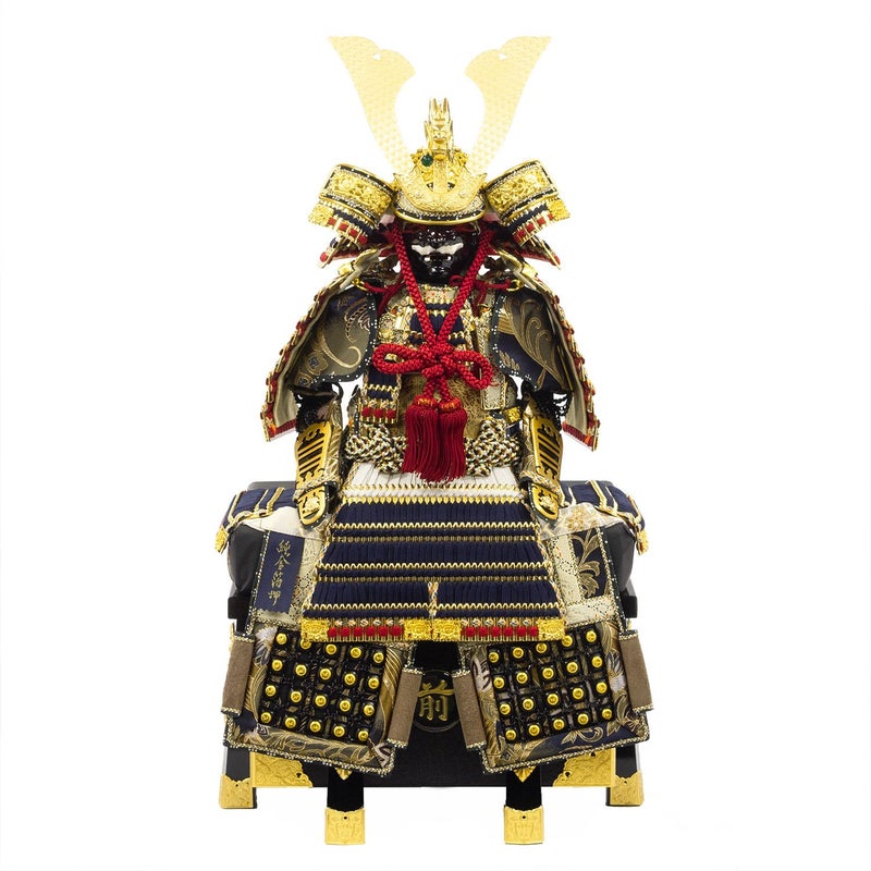 平安道斎作の正絹紺肩取縅の鎧飾り