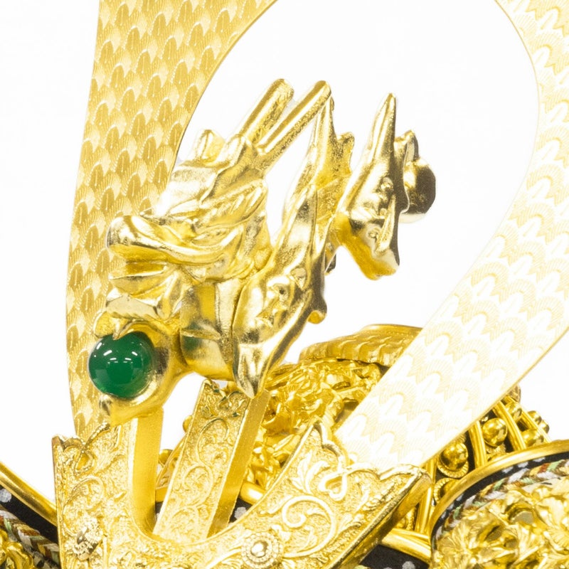 金具は本金鍍金仕上、縅は正絹絲、忍緒も正絹と全てこだわりの材料を使用し優れた技術で仕上げています。