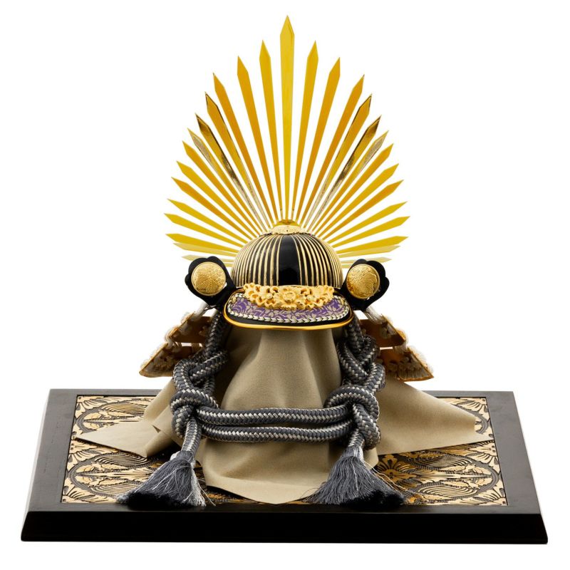 吉祥文様を描いた電鋳プレートが兜の美しさを引き立てます
