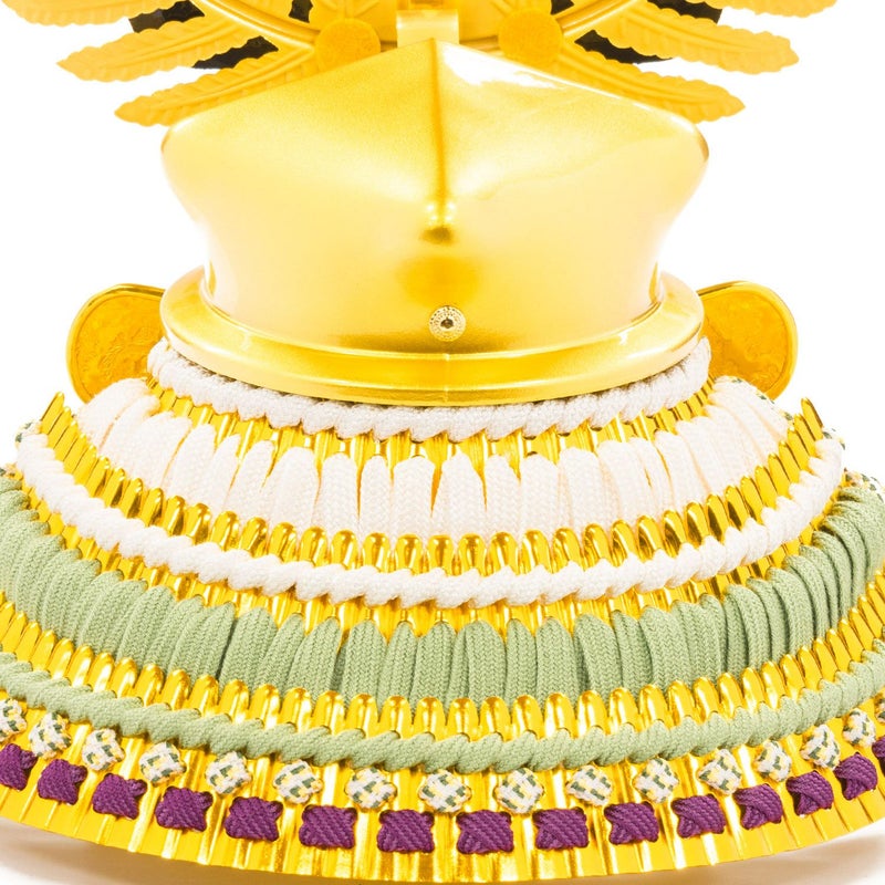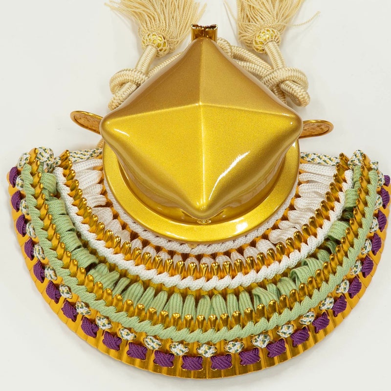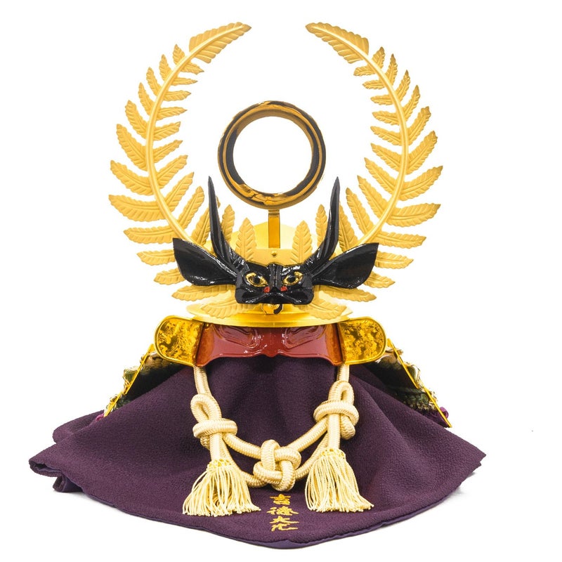 ■金色の大黒頭巾形に金色の歯朶之葉前立が印象的な兜。
