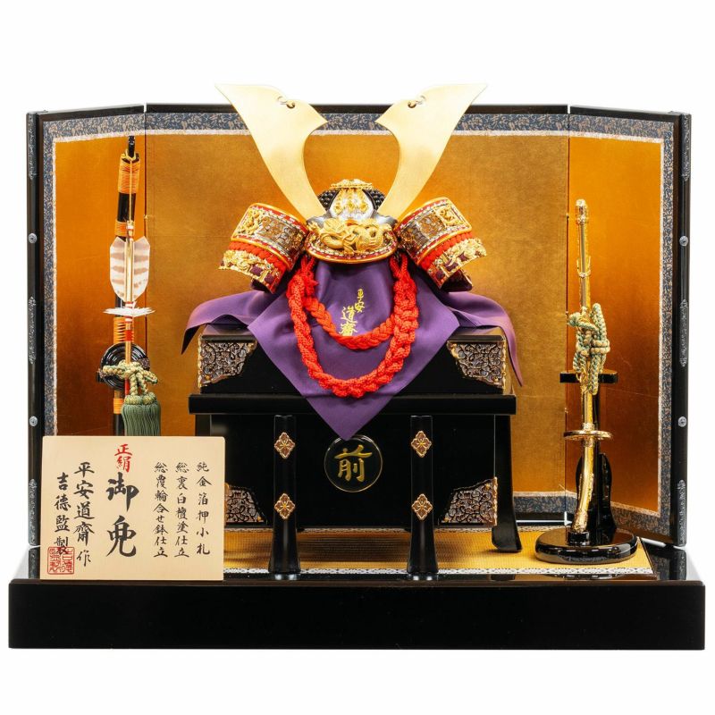 金屏風に映える平安道斎作の兜床飾りです。
