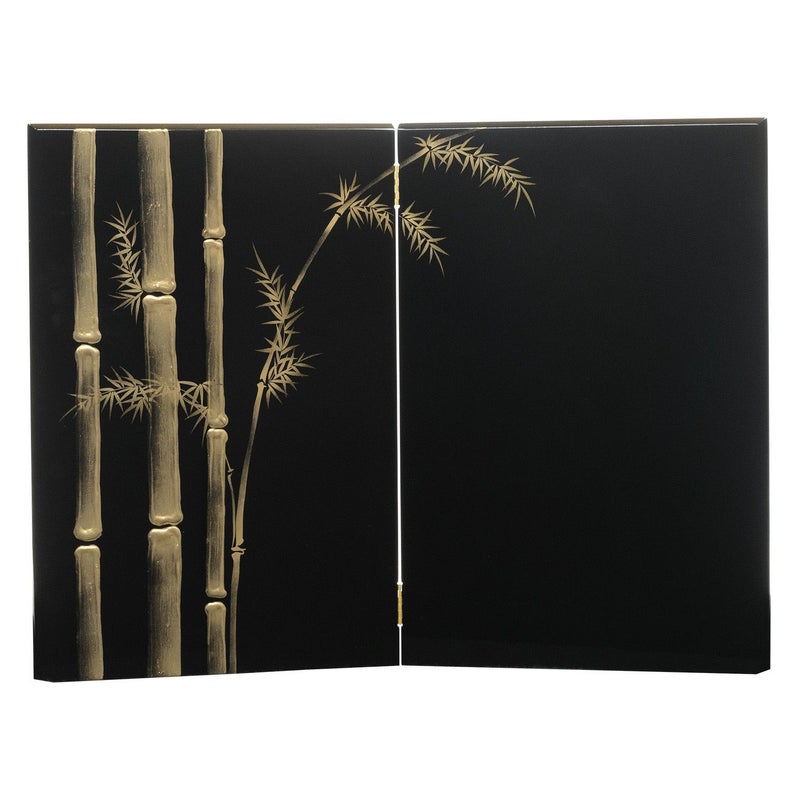 ■二曲の屏風、飾り台になる収納箱には本金でお子様の健やかな成長を願い「竹」を蒔絵で描きました。