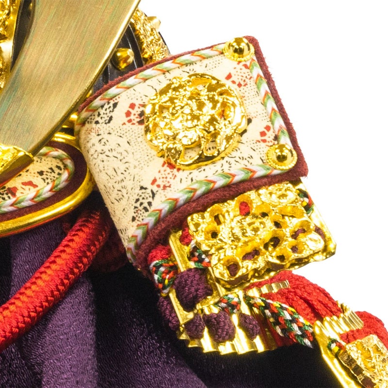 基本的には五月の節句飾りを目的に作った甲冑のため、金箔や金具を多用した豪華な雰囲気のものが多く、飾り金具の柄もおめでたいもの、出世を願うもの、健やかな成長を願うものと全て吉祥の図柄を基本としています。