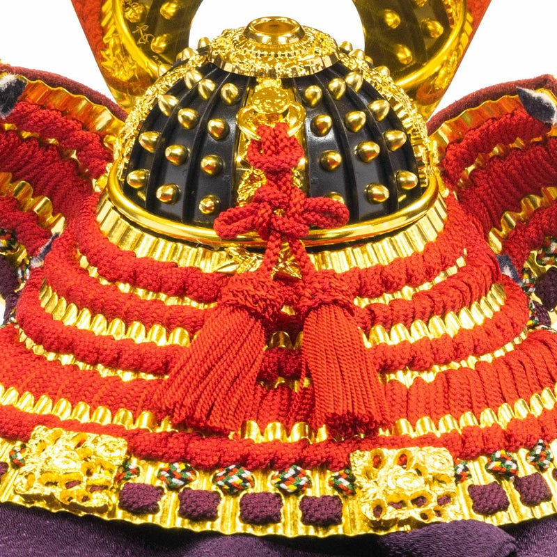 ■正絹赤絲縅金小札純金箔押8号兜。