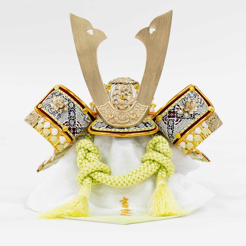 勇ましさの中にも麗しさが感じられる兜収納箱飾りです。