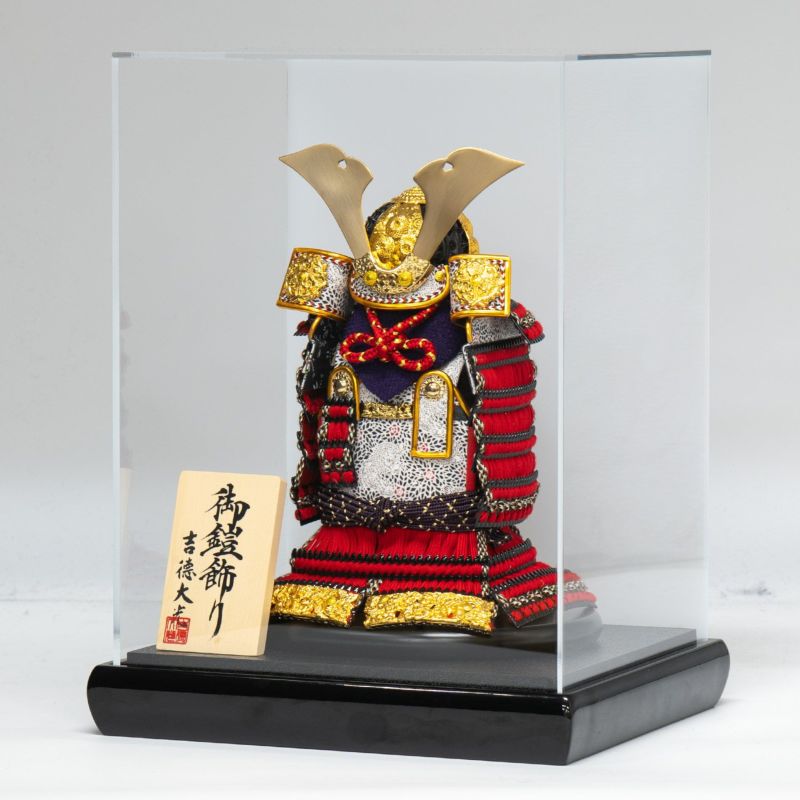 コンパクトサイズでありながら存在感漂う鎧ケース入り飾りです。