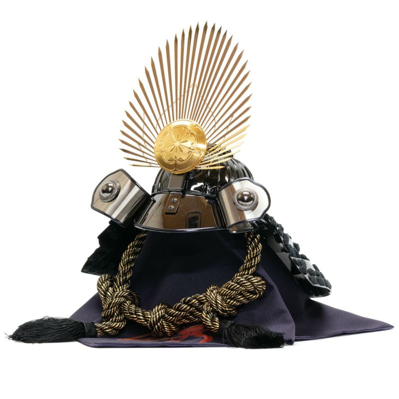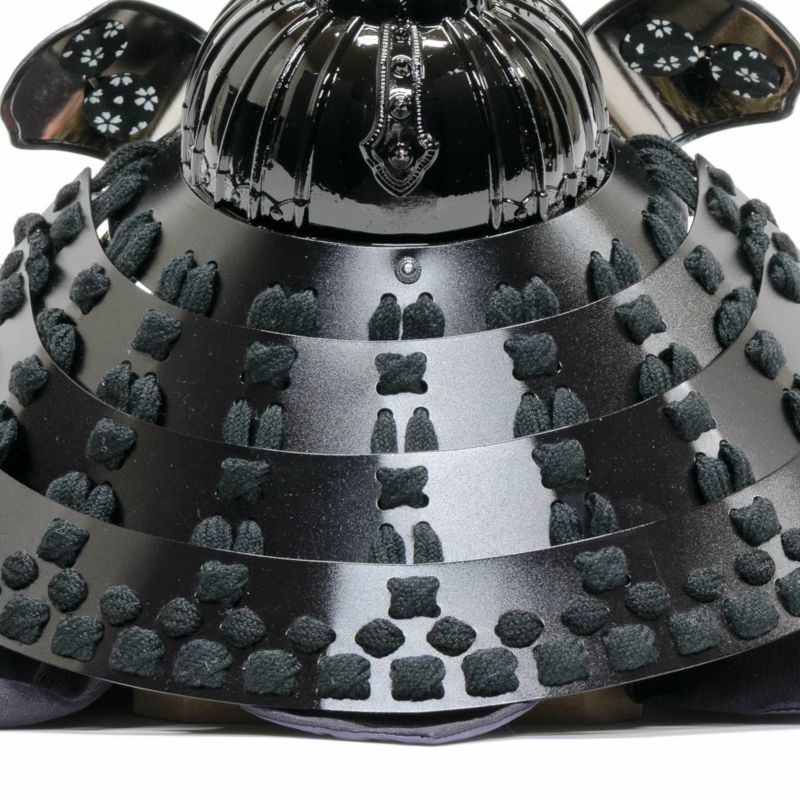 黒札に黒絲で縅した織田信長公の織田木瓜前立兜。