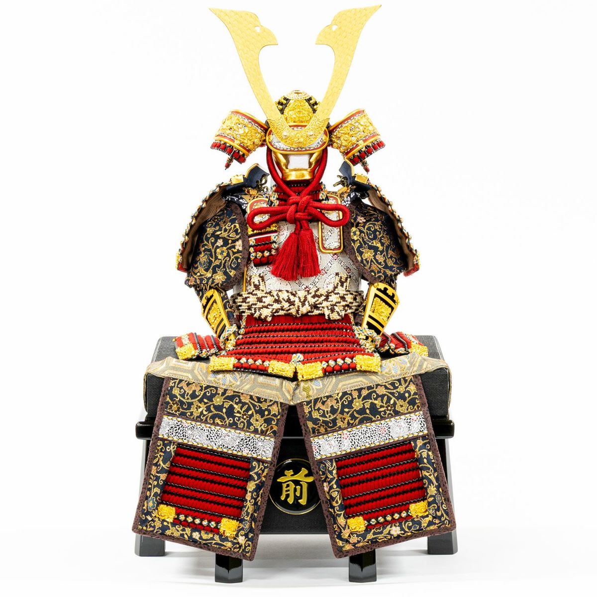 【五月人形】正絹紺肩取縅 純金箔押鎧8号床飾り 平安道齋作