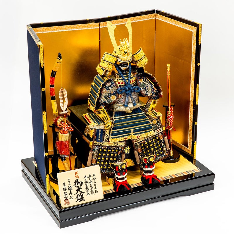 ■甲冑師・雄山作の金小札正絹鉄紺絲縅の10号大鎧。