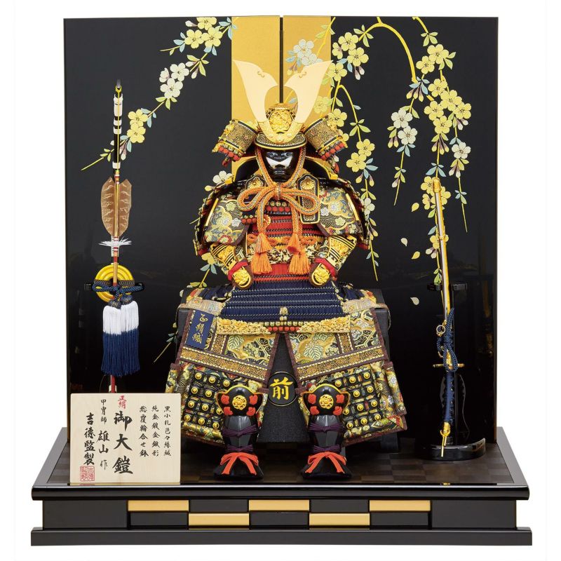 甲冑師雄山作の大鎧を優美な屏風と組み合わせた一揃えです。