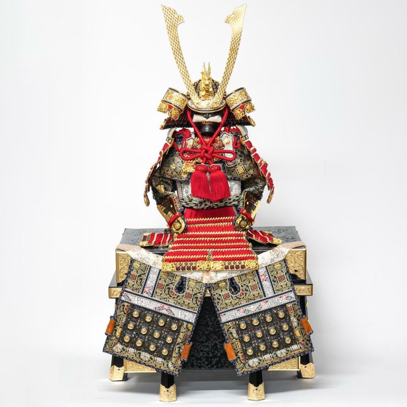 基本的には五月の節句飾りを目的に作った甲冑のため、金箔や金具を多用した豪華な雰囲気のものが多く、飾り金具の柄もおめでたいもの、出世を願うもの、健やかな成長を願うものと全て吉祥の図柄を基本としています。