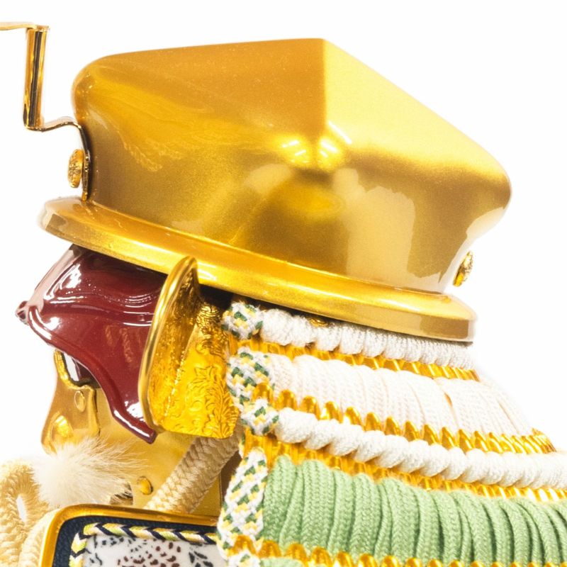 金色で統一された兜鉢・面頬・小札の色合が印象的徳川家康公の鎧飾り。