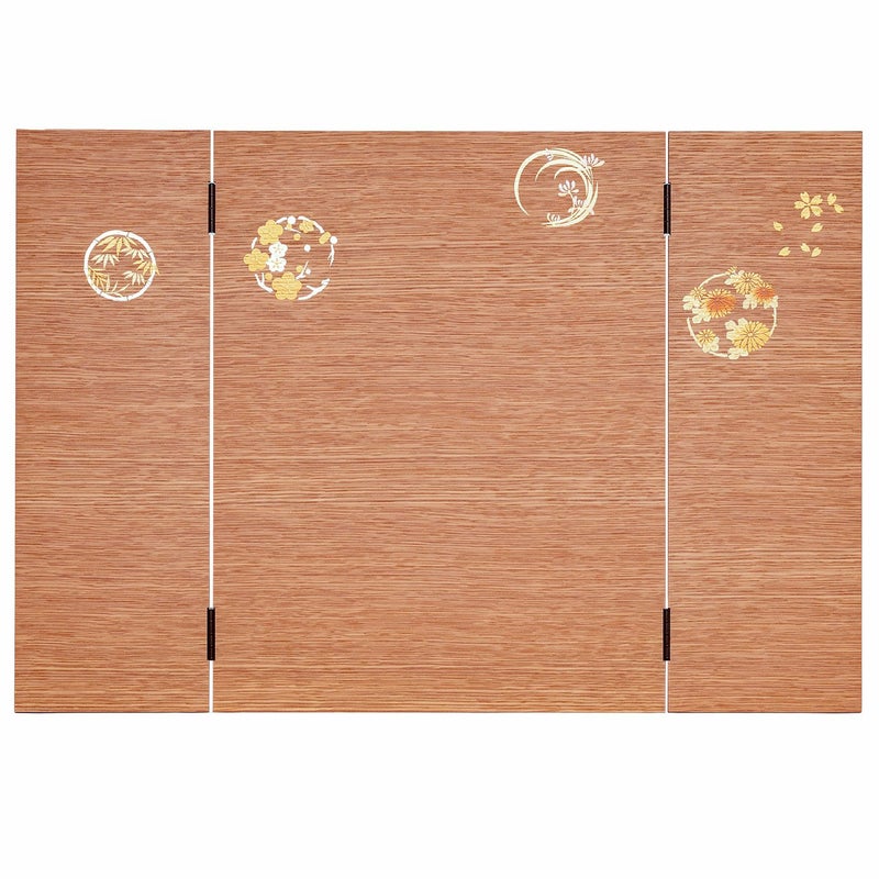 ■木目調の屏風にはに四君子(竹・菊・蘭・梅)を蒔絵で描きました。