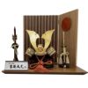 甲冑師・雄山作の朱色段縅の兜飾りです。