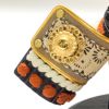 太陽を模した丸の金具は、後ろが光るようになっています。