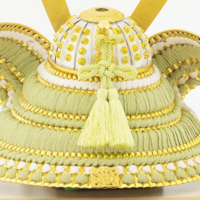 全体の雰囲気を淡い黄緑色に仕上げた兜床飾り。