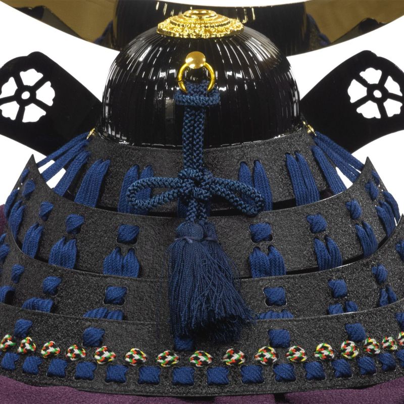 ■人気武将の一人・伊達政宗公の黒札正絹紺絲縅12号三日月形前立兜。
