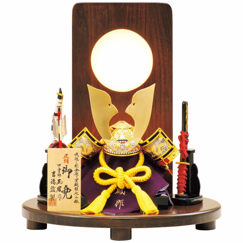 玉鳳作のコンパクトタイプの衝立式兜飾り。