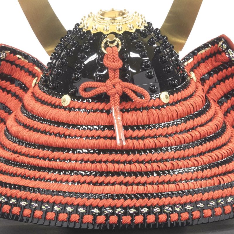兜はきめの細かい赤絲縅で仕上げた細小札仕立。