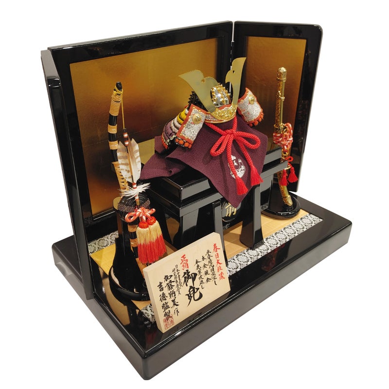 経済産業大臣指定、伝統工芸品「江戸節句人形」伝統工芸士、加藤鞆美作の兜飾り。