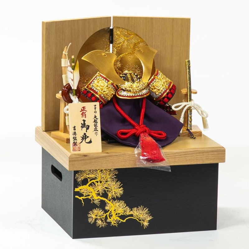 間口 30cm とコンパクトサイズな、飾る場所を選ばないフタ式兜収納箱飾りです。