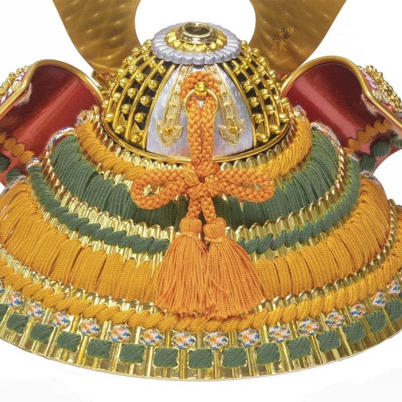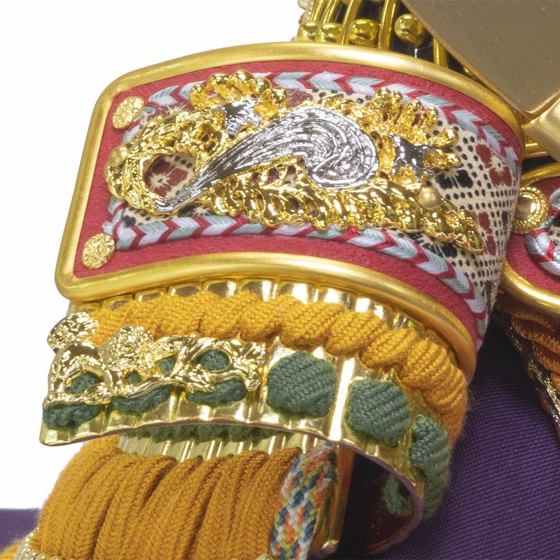 金具は本金鍍金仕上、縅は正絹絲、忍緒も正絹と全てこだわりの材料を使用し優れた技術で仕上げています。