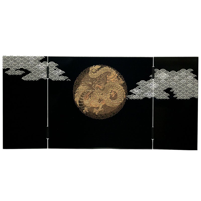 ■屏風には、金彩で「龍」に日本の伝統的文様の青海波を描きました。