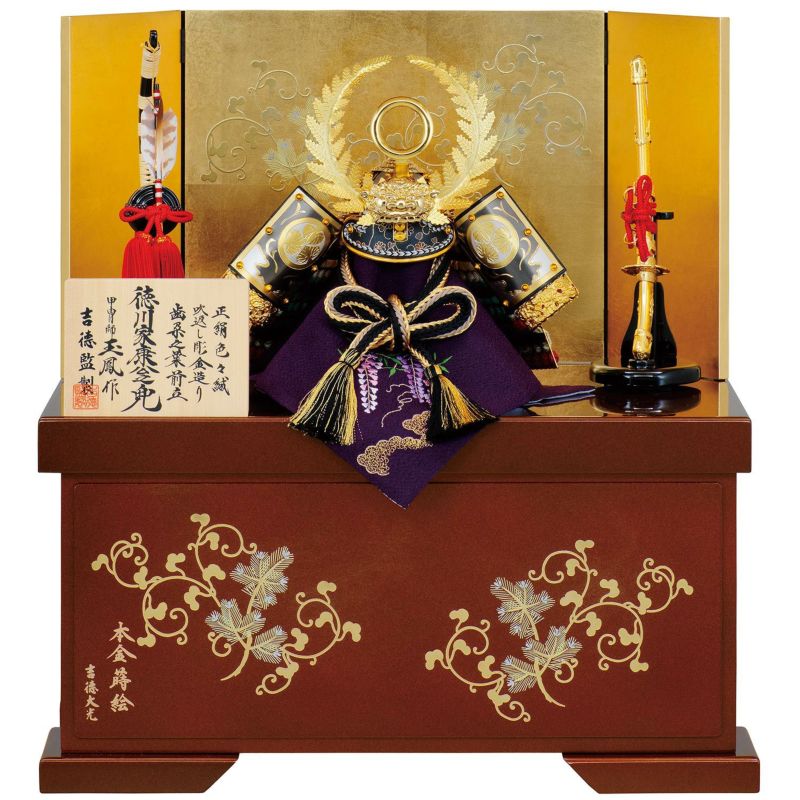 玉鳳作、徳川家康公の歯朶之葉前立兜収納箱飾りです。