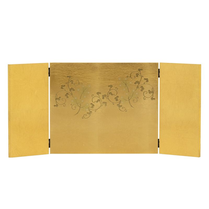■屏風には光沢の美しい金沢箔にコーティング加工を施し、唐草蒔絵を描きました。