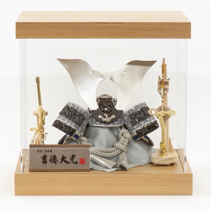 ■こちらの商品の兜や弓太刀等はケースに固定されておりません。付属のケースにお客様ご自身でお飾りができるケース兜飾りです。