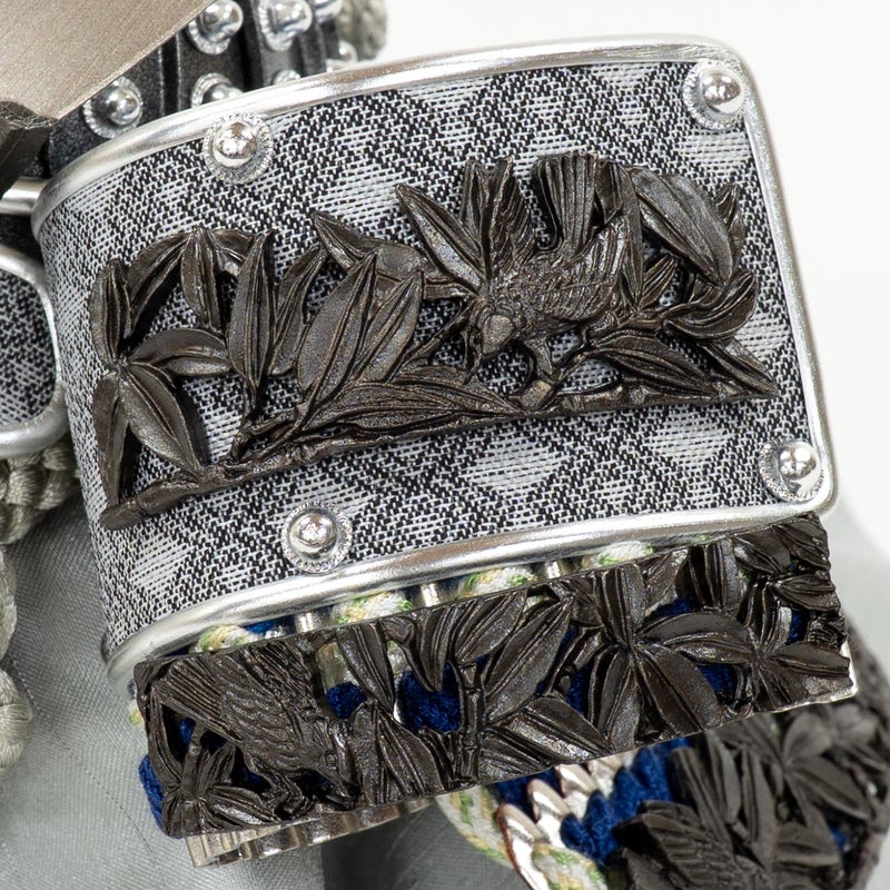 ■兜の吹返し、鍬形台には、「竹と雀」の装飾を施し、美しく仕上げました。