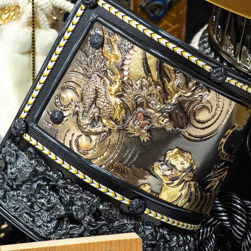 ■兜の吹返しには勇ましい龍虎をデザインしました。