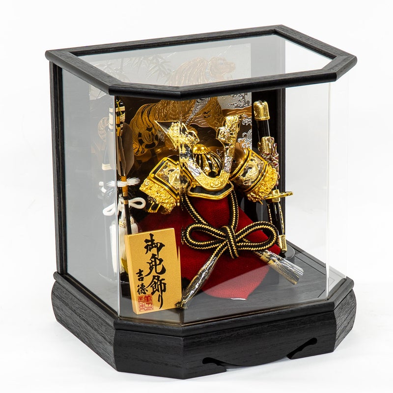 背景に描いた虎が印象的なケース入り飾り。
