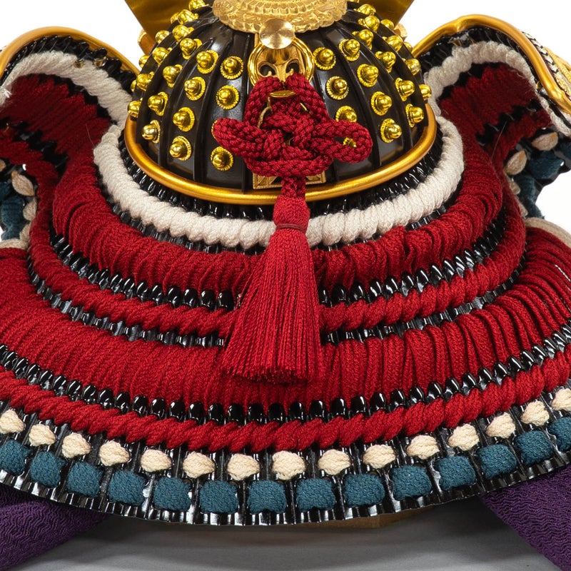 ■黒小札赤絲縅8号兜。