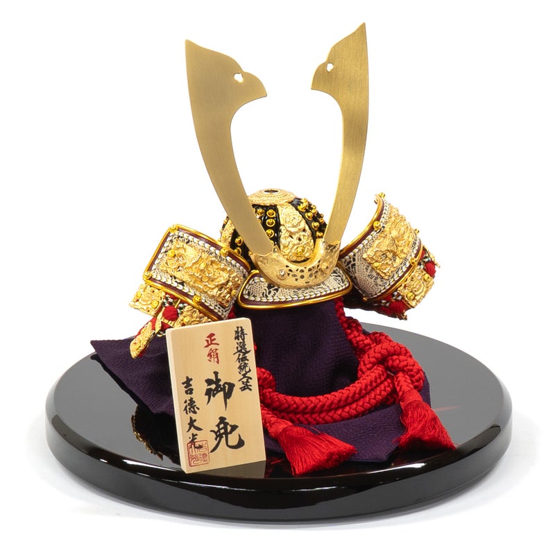 ■コンパクトサイズながらも迫力を感じられる兜飾り。