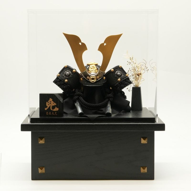 3. 【五月人形】黒絲縅 大鍬形 「禄」 兜3号アクリルケース付き収納箱飾り