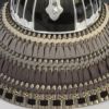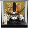 上杉謙信公モチーフの兜と、落ち着いた色合いの陣羽織を実際に着用できるケース入り飾りです。